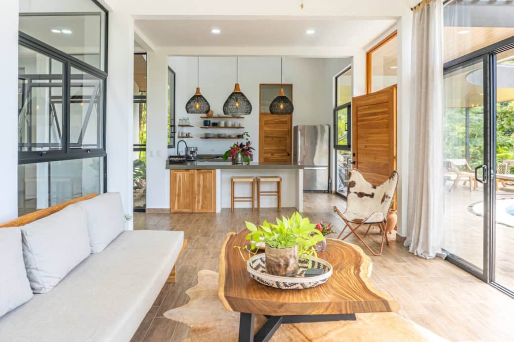 With an expansive rooftop deck, custom locally made furniture, a covered poolside lounge complete with outdoor kitchen, and a stunning infinity pool designed for breathtaking views, this newly built two-bedroom retreat is undeniably Costa Rica. And with solar panels powering the entire home, you can rest easy knowing your private oasis is fully off-grid.
